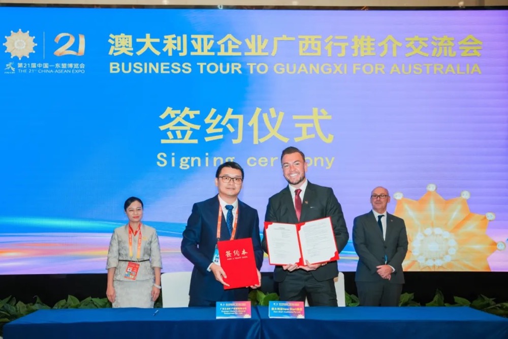 9月24日,在廣西南寧舉辦的第21屆中國(guó)—東盟博覽會(huì)澳大利亞企業(yè)廣西行推介交流會(huì)上,廣西五礦集團(tuán)所屬五礦資源公司與澳洲NEW START集團(tuán)共同簽署鋁錠購(gòu)銷意向協(xié)議,東博會(huì)秘書處秘書長(zhǎng)韋朝暉、副秘書長(zhǎng)梁藝光、澳大利亞駐廣州總領(lǐng)事康天幕見(jiàn)證簽約儀式。同時(shí)為就協(xié)議及合作事項(xiàng)進(jìn)行深入磋商,雙方于25日召開(kāi)座談會(huì)并達(dá)成系列意向共識(shí)。